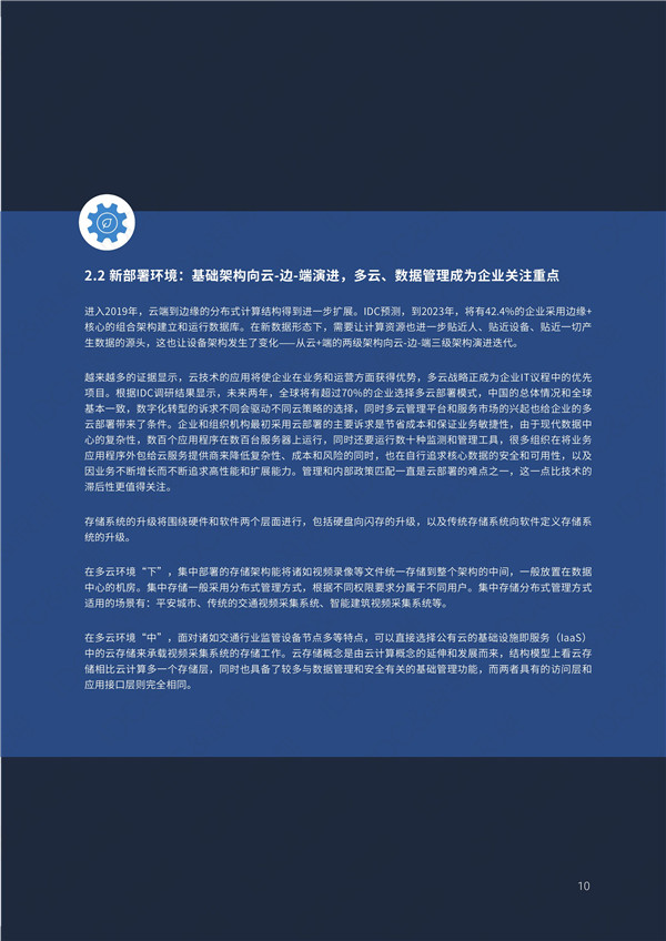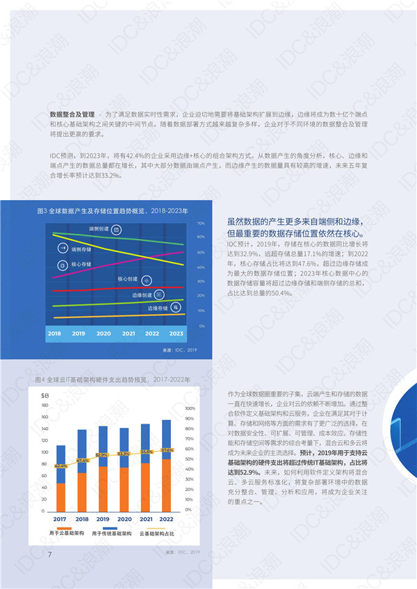 報告同時指出,隨著數(shù)據(jù)爆發(fā)式增長,到2025年全球新創(chuàng)建的數(shù)據(jù)將達(dá)到175ZB;企業(yè)對實時數(shù)據(jù)需求增加,到2023年實時數(shù)據(jù)占全球數(shù)據(jù)圈24.5%的份額;未來全球?qū)⒂谐^70%的企業(yè)選擇多云部署模式,到2023年42.4%的企業(yè)將采用邊緣+核心的組合架構(gòu),核心數(shù)據(jù)中心的數(shù)據(jù)存儲容量占比將超過50%。